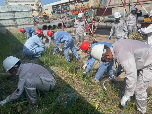 本次活动地点为南化公司污水处理系统源头减盐减氮优化运行项目现场,在第一片区党支部书记韦庆及项目经理石贤明的带领下,参加人员积极投入到现场环境整治活动中。